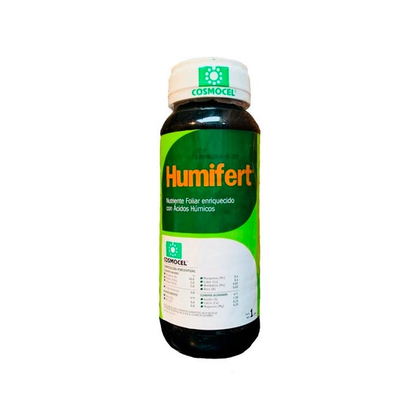 Nutriente foliar completo enriquecido con ácidos húmicos, sustancia orgánica natural que ayuda en la absorción de nutrientes aplicados al follaje. Los elementos menores contenidos en Humifert se encuentran en forma quelatada.